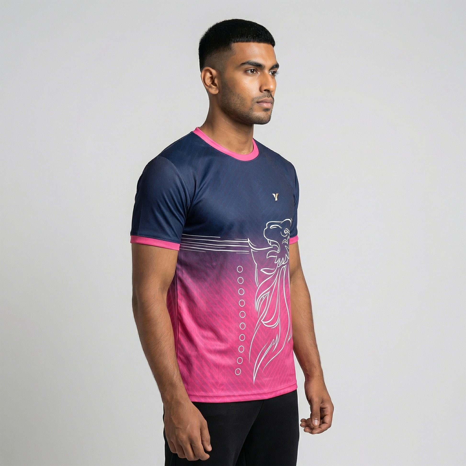 Support your team in style with this pink cricket jersey for fans. The Rajasthan cricket jersey design gives a strong supporter feel and works great as a cricket supporter jersey or fan jersey with name and number.