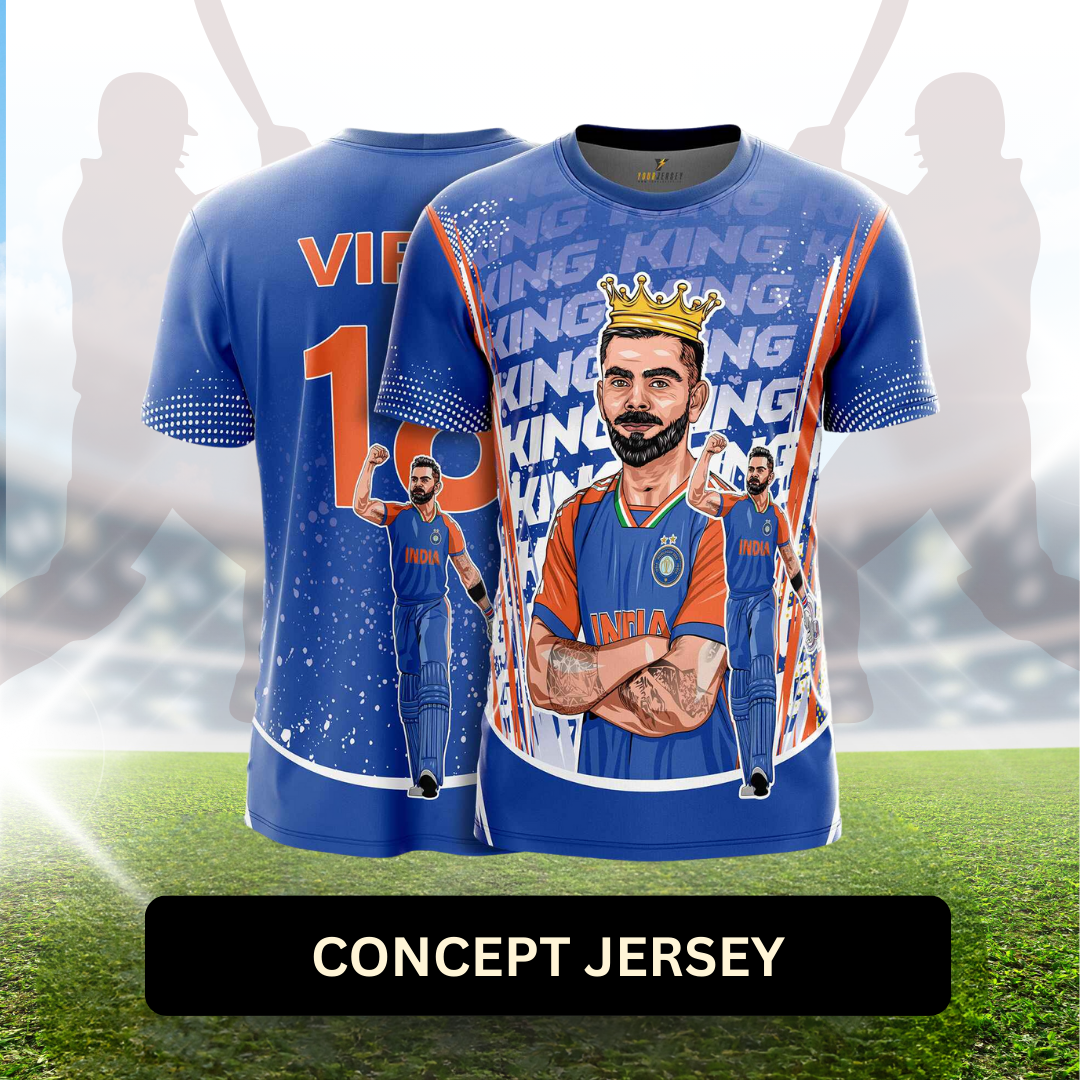 Celebrate the cricket legend King Kohli with the exclusive King Kohli GOAT Edition Jersey in the iconic blue edition. Designed for fans of all ages and genders, this premium-quality jersey combines style, comfort, and performance. Crafted with lightweight, breathable fabric, it ensures durability and optimal wearability.